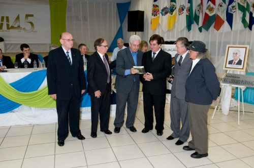 Em vários momentos a emoção tomou conta dos homenageados e convidados que participaram da solenidade em comemoração aos 45 anos da AMAVI na última sexta-feira, (27), em Rio do Sul. Eládio Tambosi, ex-secretário executivo da AMAVI, não controlou as lágrimas ao receber a comenda “Mérito Municipalista”, ao falar dos 32 anos de atuação e dedicação à AMAVI e do apoio recebido da equipe técnica da associação e da compreensão da família. Em seguida, durante o descerramento da placa que dá nome ao auditório da AMAVI de “Prefeito Horst Gerhard Purnhagen”, grande parte dos presentes se emocionou com o depoimento de Miriam Purnhagen, que acompanhada dos filhos descerrou a placa e declarou ter sentido a presença do marido no evento. Por último, o presidente da Câmara Júnior em 1964, Rodolfo Marzall Filho se emocionou ao recordar a época de criação da AMAVI e como tudo aconteceu.