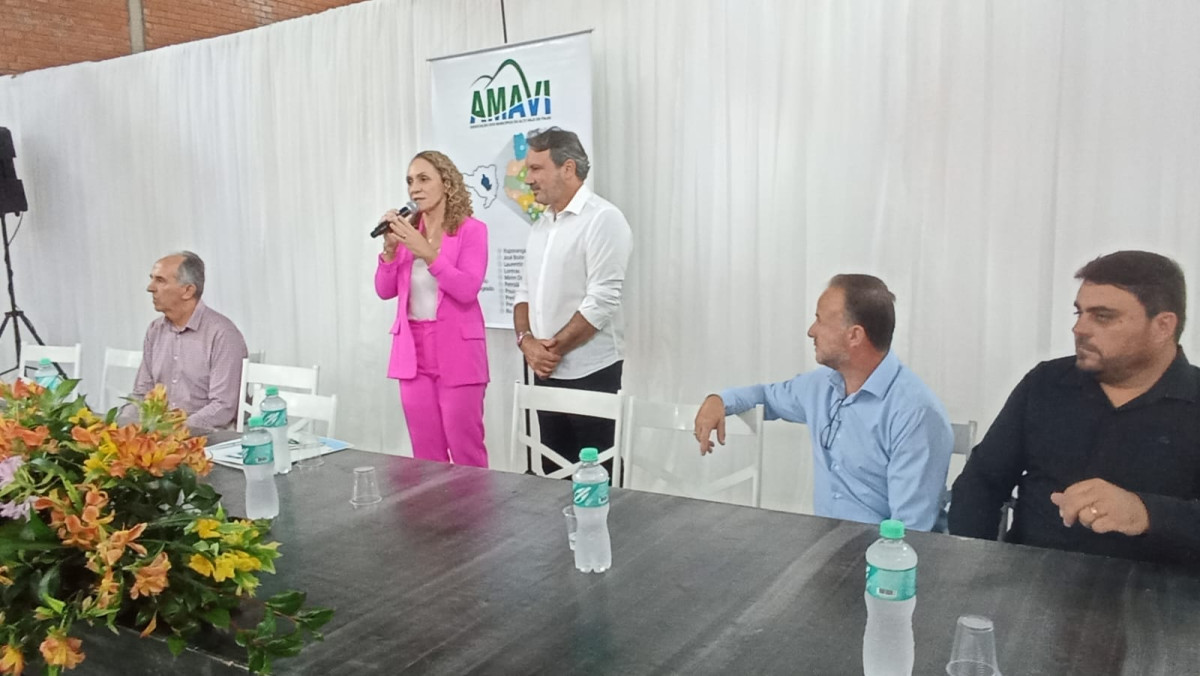 Fazendo parte da programação da 1ª Agroplantas, na última sexta-feira, 8, foi realizada em Laurentino assembleia ordinária da AMAVI e do consórcio CISAMAVI. A reunião teve como pauta a apresentação do relatório de atividades 2023 e o plano de trabalho da AMAVI para 2024 e palestra com a presidente da Pamplona Alimentos, Irani Pamplona Peters, sobre a representatividade da empresa no movimento econômico da região e liderança feminina.
