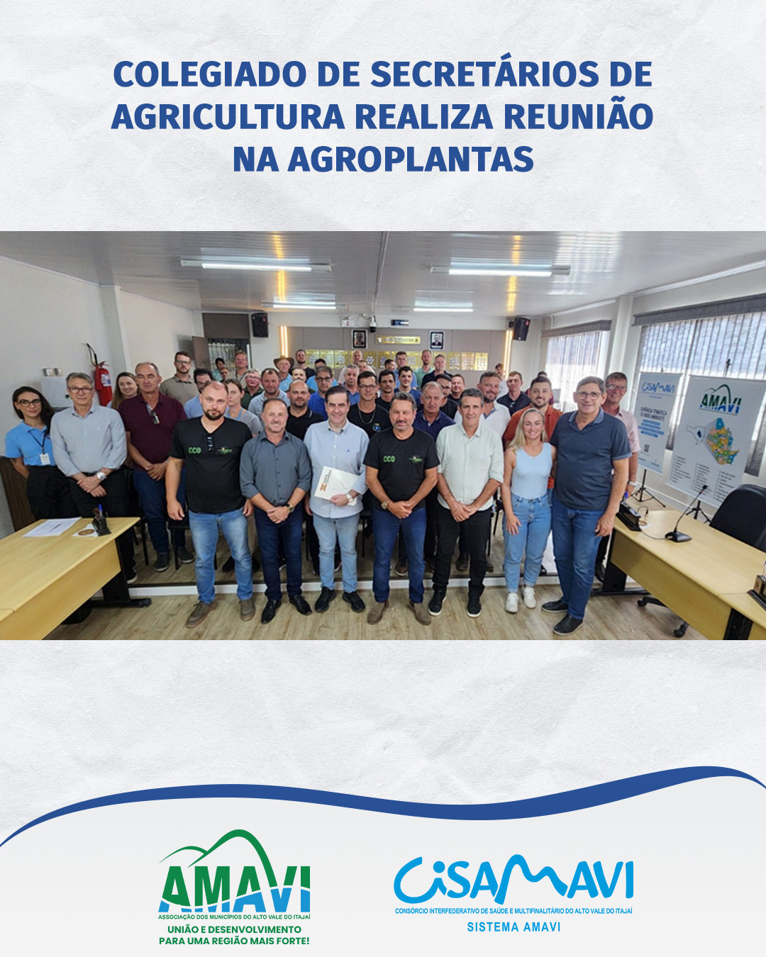 Fazendo parte da programação da 2ª Agroplantas de Laurentino, no último dia 14 ocorreu no município, a primeira reunião do Colegiado dos Secretários de Agricultura da AMAVI (COAGRI). O encontro contou com a participação dos secretários municipais de agricultura da região e demais representantes dos municípios e do Secretário de Agricultura e Pecuária de Santa Catarina, Carlos Chiodini, e o Secretário Adjunto, Ademir Dalla Cort. Os representantes do governo do Estado detalharam a trajetória da governança em Santa Catarina e as ações realizadas até o momento, enfatizando os avanços e desafios para o setor agrícola.