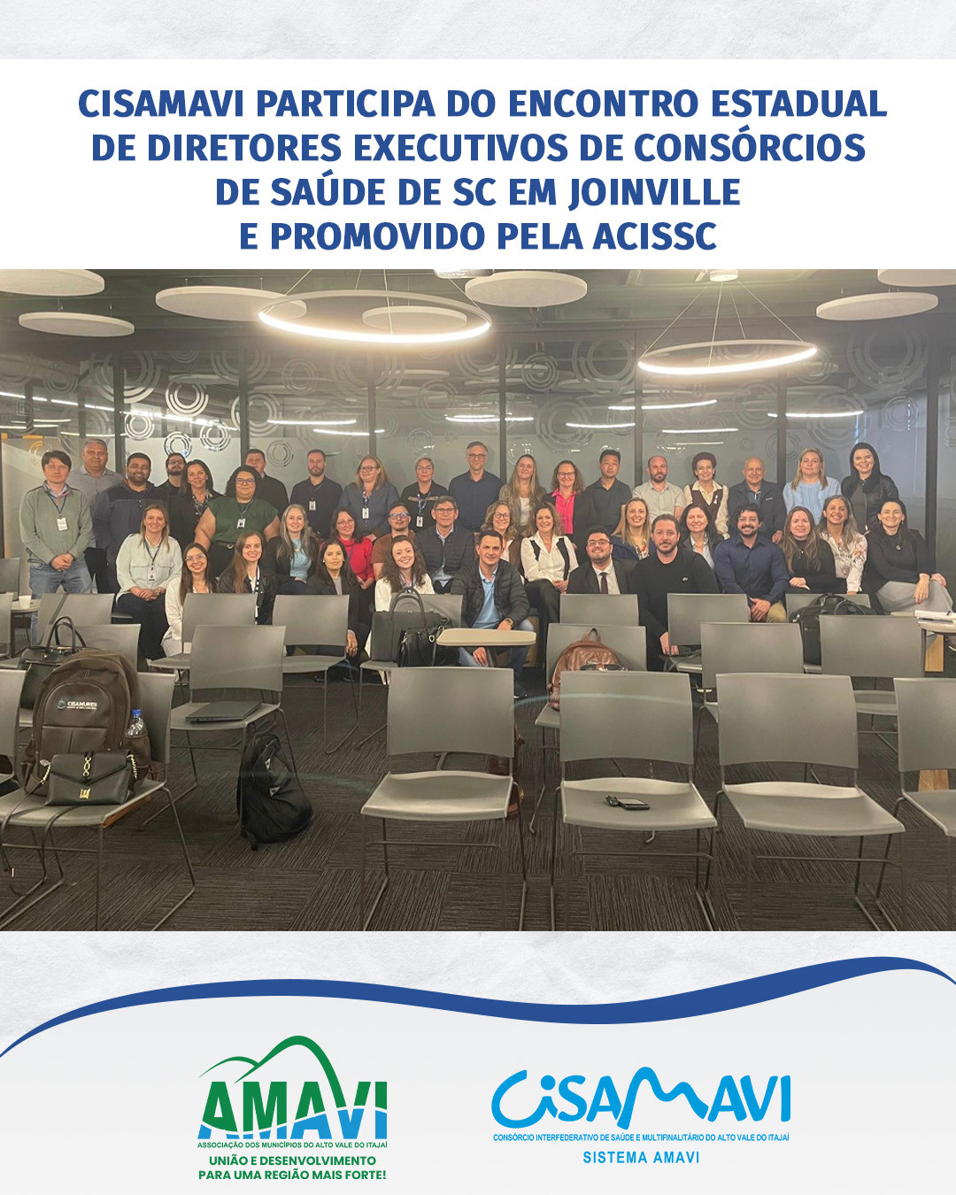 Nos dias 07 e 08 de outubro, o CISAMAVI marcou presença no Encontro Estadual de Diretores Executivos de Consórcios de Saúde de SC, realizado em Joinville e promovido pela ACISSC.