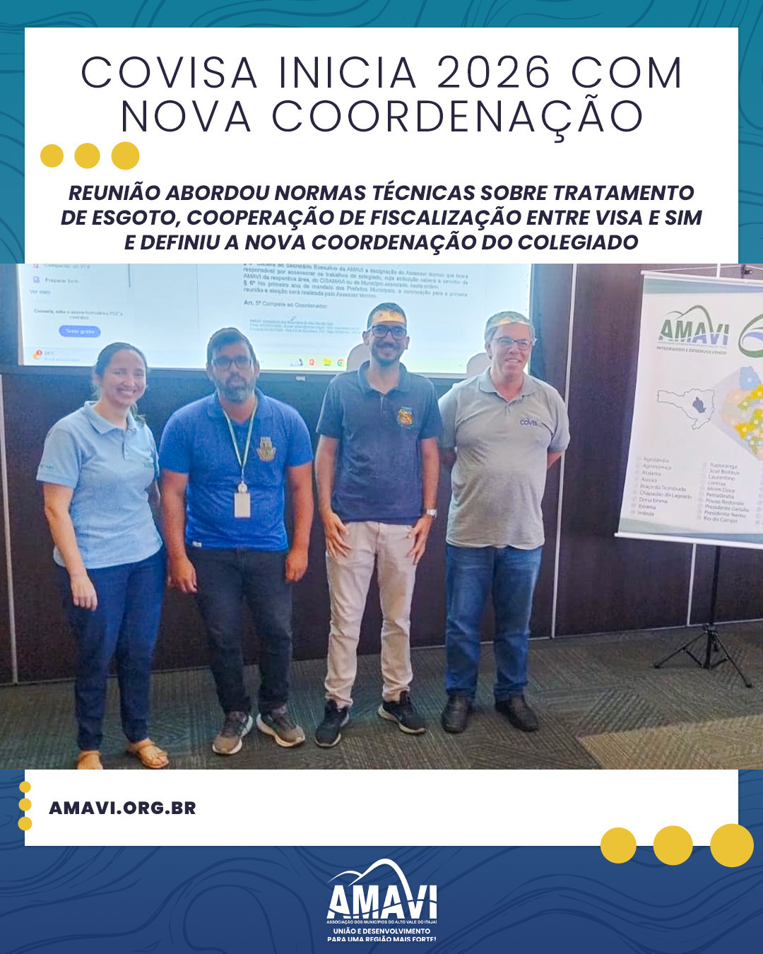 Os integrantes do Colegiado de Vigilância Sanitária dos Municípios da AMAVI (COVISA), estiveram reunidos ontem, 11, para a primeira reunião ordinária do ano, com eleição da nova coordenação.