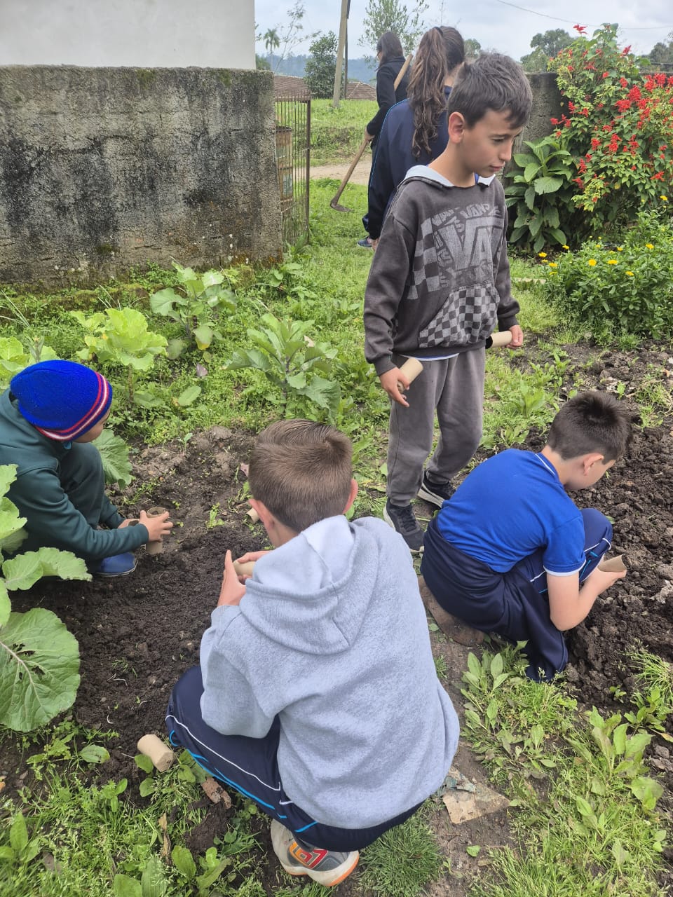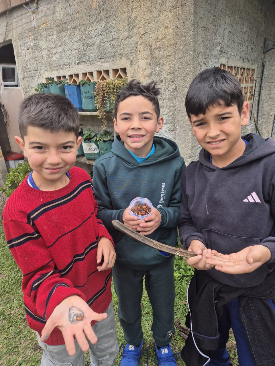 Na Escola Madre Maria Avosani, as professoras Bárbara Winter e Lucir Manke estão desenvolvendo um ensino verdadeiramente multidisciplinar. Através de atividades em Língua Portuguesa, História e Geografia, os alunos realizam leituras, produções de texto e ilustrações. O destaque fica para a investigação sobre o Pau-brasil, desde a colonização até os dias atuais, representada em uma linha do tempo construída coletivamente. Além disso, os estudantes tiveram a oportunidade de observar células vegetais ao microscópio e estão envolvidos no plantio de sementes e mudas de Pau-brasil, acompanhando o crescimento e cuidando das novas árvores.